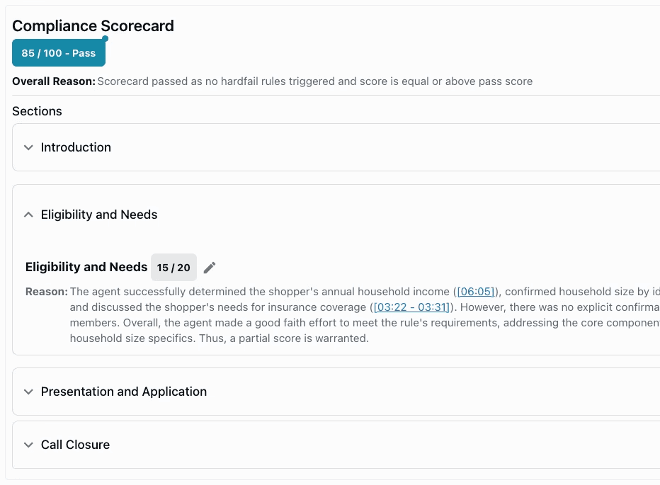 Upload your own QA criteria and apply it consistently across every policy sale.