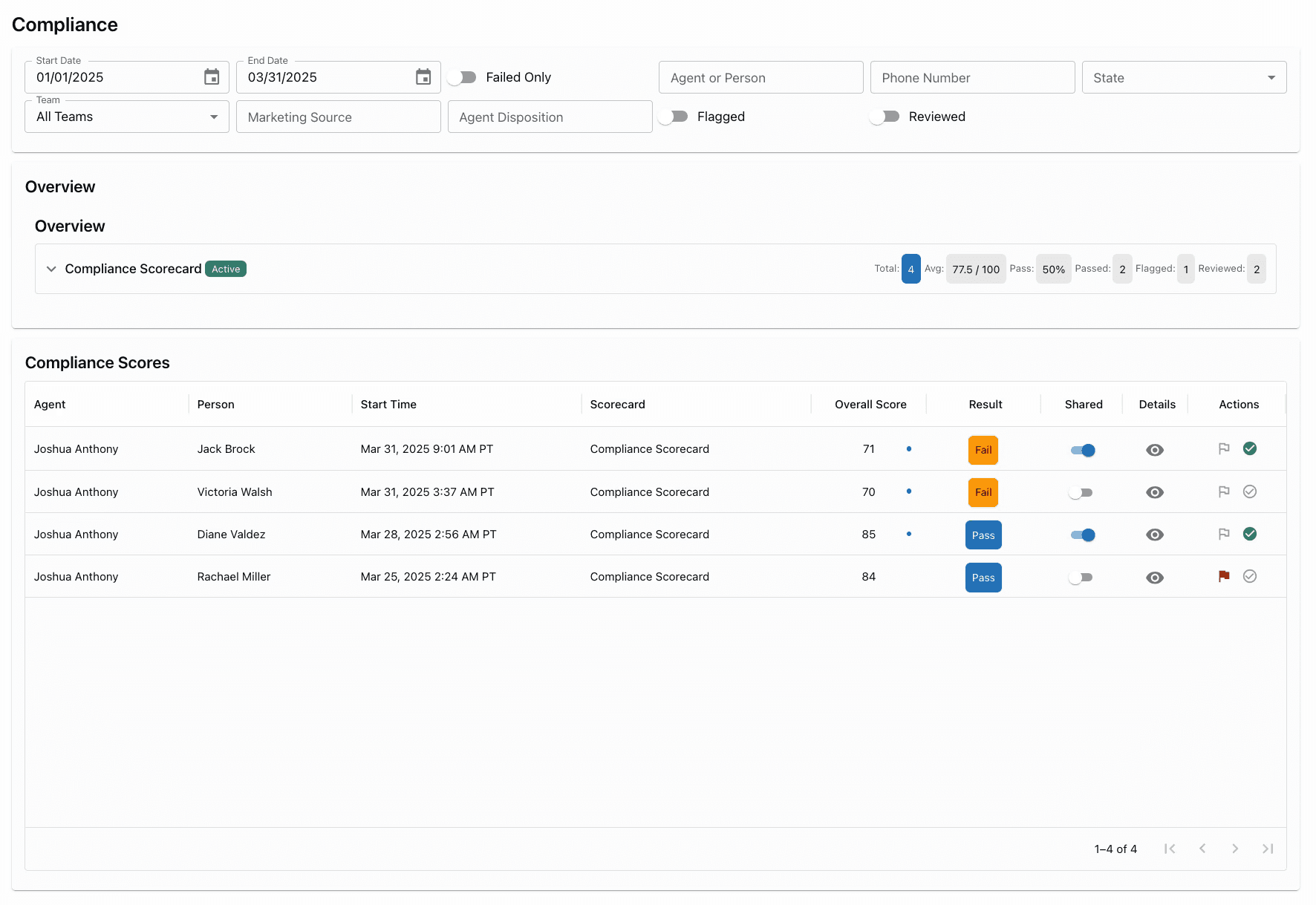 Every call is transcribed and easy to review, making audits and coaching simple.